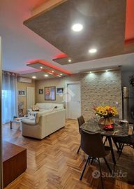 Proponiamo appartamento di 103 mq commerciali, situato al piano medio di un edificio costruito nel 2008. Questa soluzione abitativa offre un'ottima distribuzione degli spazi, ideale per chi cerca comfort e funzionalità. L'appartamento si compone di quattro locali: due camere da letto, uno studio versatile e un ampio soggiorno. La presenza di doppi servizi garantisce praticità per tutta la famiglia. Gli interni sono arricchiti da un elegante parquet che dona calore e raffinatezza agli ambienti e giochi di luce donati dai controsoffitti. Un balcone abitabile rappresenta un valore aggiunto, perfetto per momenti di relax all'aperto. La zona è ben servita, con facile accesso a negozi, scuole e trasporti pubblici, rendendo questa proposta un'opportunità da non perdere per chi desidera vivere in un contesto comodo e ben collegato.Completa la proprietà il box auto al piano seminterrato