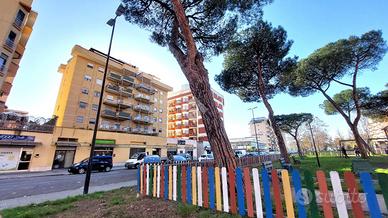 L'ampio ingresso ci porta, da un lato alla cucina abitabile con l'uscita sul balcone e dall'altro alla sala di 27 Mq con uscita sul Terrazzo di 15 Mq. che affaccia sul parco.