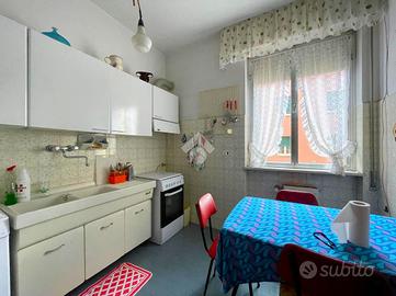 Lavagna: in Via Cesare Battisti, in condominio ordinato nelle parti comuni, proponiamo in vendita ampio appartamento posto al primo piano con ascensore. La composizione interna è data da: un ingresso, un ampio e luminoso soggiorno, una cucina abitabile, due camere da letto, un bagno finestrato e due balconi. Possibilità di realizzare la terza camera. Il riscaldamento è centralizzato con termovalvole. L'immobile si trova in posizione strategica, comodo al mare e a tutti i servizi e gode di un'esposizione a sud. Possibilità di ricavare la terza camera.