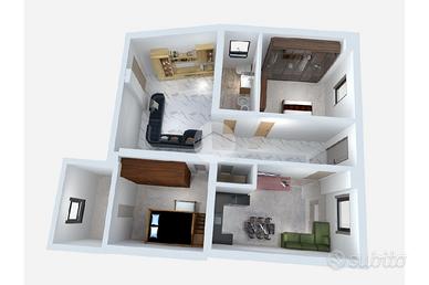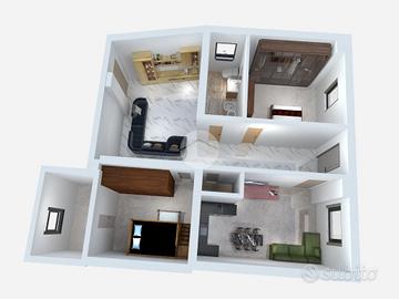 Completano la proprietà un comodo ripostiglio e un bagno finestrato, completo di sanitari, vasca con box e predisposizione per lavatrice.