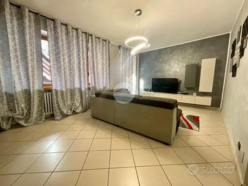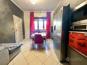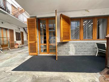 L'ingresso distribuisce in modo funzionale gli spazi: la cucina abitabile, dotata di finestra, è separata dal soggiorno doppio, particolarmente luminoso grazie a tre ampie finestre e a una porta finestra che conduce al cortile comune. In quest'area esterna è stato ricavato un angolo dedicato al relax all'aria aperta.
