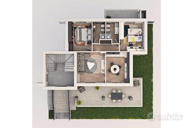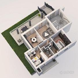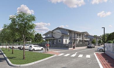 Nuova costruzione di pregio in CLASSE A4 a Leinì, in posizione semicentrale, all'angolo tra Via Del Padre e Via Antonio Gramsci. L'immobile offre un ingresso living che conduce a un soggiorno separato dalla cucina abitabile, entrambi dotati di accesso a un terrazzo privato collegato al giardino privato. Un disimpegno separa le due camere da letto: una con finestra e l'altra con porta finestra che accede al balcone. I doppi servizi, entrambi finestrati, sono completi di sanitari, doccia e predisposizione per la lavatrice. L'appartamento include una cantina un box auto di 35 Mq. È prevista un'ampia selezione di materiali da capitolato, con rifiniture interne di alta qualità e riscaldamento autonomo. La costruzione rispetterà tutte le normative sul risparmio energetico e acustico, includendo pannelli fotovoltaici per la produzione di energia elettrica e riscaldamento a pavimento in ogni ambiente.