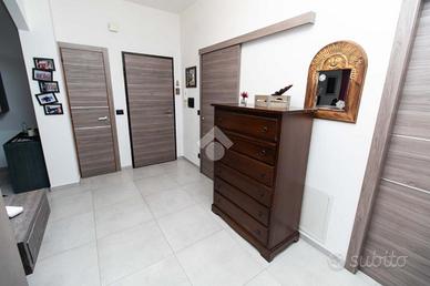 La palazzina, rifinita in paramano, è situata in una zona comoda e servita, facilmente raggiungibile a piedi da tutti i principali servizi della cittadina e ben collegata dai mezzi pubblici. L'appartamento si trova al secondo ed ultimo piano; la posizione angolare e la tripla esposizione est-sud-ovest garantiscono un'eccellente luminosità naturale in tutti gli ambienti. L'immobile è stato oggetto di una ristrutturazione totale, eseguita con grande attenzione ai dettagli e con materiali di ottima qualità. Il riscaldamento autonomo a pavimento con caldaia a condensazione, unito alle contenute spese condominiali, assicura un'elevata efficienza energetica e un'ottimizzazione dei costi di gestione. L'ingresso, tramite portoncino blindato, conduce alla zona giorno composta da un soggiorno ampio e vivibile e da una cucina abitabile con affaccio sul balcone interno verandato. La zona notte ospita due camere da letto, entrambe di generosa metratura e arredabili come matrimoniali, con accesso al balcone. Il bagno finestrato è completo di doccia con seduta. Un comodo ripostiglio completa la superficie dell'abitazione. L'immobile è inoltre dotato di zanzariere su tutti gli infissi in doppio vetro a taglio termico e di due condizionatori, elementi che ne aumentano comfort e valore. Cantina e box auto inclusi nel prezzo.