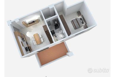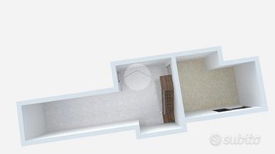L'ingresso è su una luminosa cucina abitabile, arricchita da una porta finestra che consente l'accesso al terrazzo con affaccio sul cortile interno. Un pratico disimpegno conduce alla camera da letto matrimoniale finestrata e al bagno, anch'esso finestrato, completo di box doccia e predisposizione per la lavatrice.