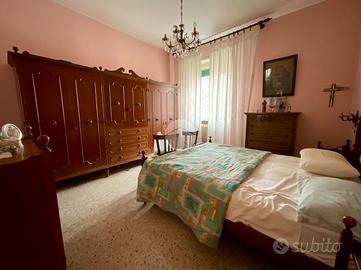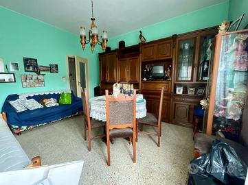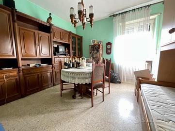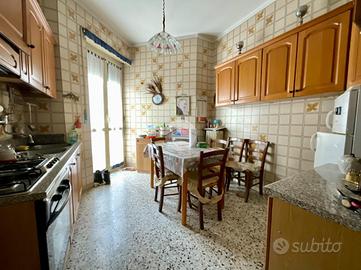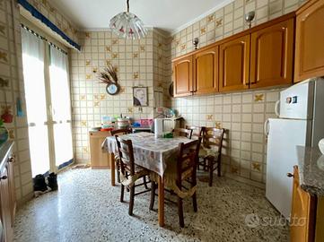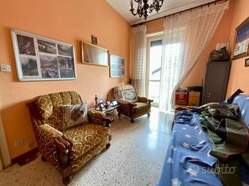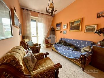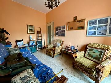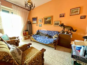 L'ingresso conduce ai vari ambienti dell'abitazione: la cucina è abitabile e separata dal soggiorno, quest'ultimo particolarmente luminoso grazie alla presenza di una finestra e di una porta finestra che consente l'accesso al balcone con affaccio su Via del Santuario.