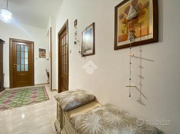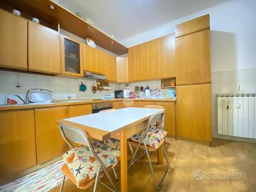L'abitazione si apre su un comodo disimpegno e offre una spaziosa cucina abitabile, un pratico ripostiglio e un ampio soggiorno ideale per momenti di convivialità.