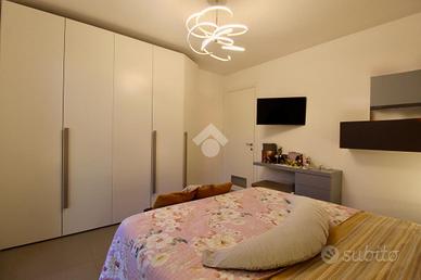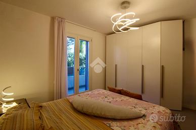 Dal locale pranzo soggiorno accediamo alla zona notte, caratterizzata da due camere da letto matrimoniali arredate con armadi, comodini e mobile tv. Entrambe hanno accesso al terrazzo, il quale si estende lungo tutto il lato dell'immobile.