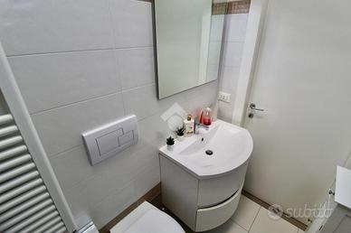 Dal disimpegno della zona notte, sulla sinistra, troviamo il bagno, finestrato e completo di tutti i servizi, compreso box doccia.