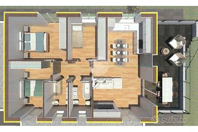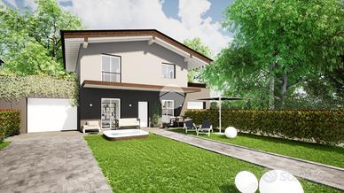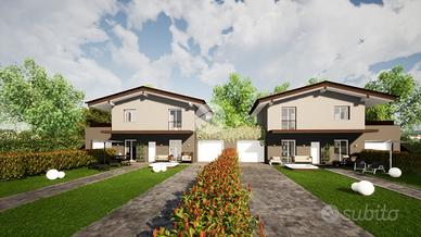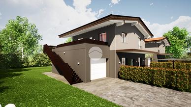 Al piano terra si sviluppa un quadrilocale composto da soggiorno con cucina open space, tre camere da letto e doppi servizi finestrati. All'esterno garage doppio e giardino.
