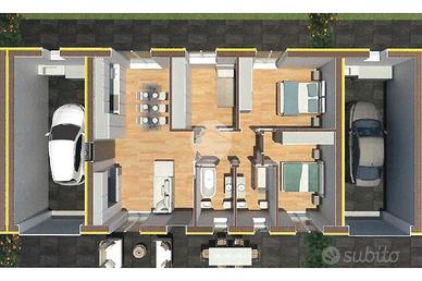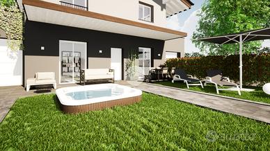 Al piano terra si sviluppa un quadrilocale composto da soggiorno con cucina open space, tre camere da letto e doppi servizi finestrati. All'esterno garage doppio e giardino.