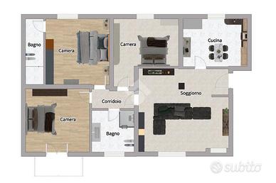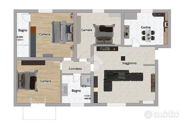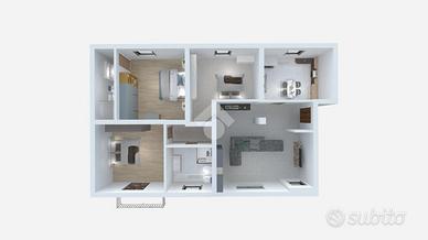 La zona notte, accessibile tramite un disimpegno, è pensata per garantire privacy e comfort. Troverai una camera matrimoniale con balcone, una seconda camera matrimoniale con bagno privato, e una terza camera da letto versatile. A completare il tutto, un ulteriore bagno finestrato con doccia, che aggiunge praticità alla vita quotidiana.