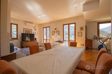 PORZIONE DI BIFAMILIARE CON BOX AUTO DOPPIO COSA SAPERE SULL'IMMOBILE La soluzione che andiamo a proporre è una porzione di bifamiliare, sita al piano secondo, composta da sole due unità abitative, con box auto doppio di proprietà. Superata la porta d'ingresso, si accede alla cucina separata abitabile e all'ampia zona giorno, dotata di camino a legno,n dove, tramite portafinestra, accediamo al primo balcone, ideale per momenti di relax all'aperto. Un comodo disimpegno conduce alla zona notte, composta da una spaziosa camera da letto matrimoniale dotata di bagno finestrato privato con box doccia, una camera doppia, una camera singola, attualmente adibita a locale lavanderia ed un bagno finestrato con sanitari in ceramica e box doccia. La zona notte è completata da una spaziosa cabina armadio situata nel disimpegno, perfetta per ottimizzare gli spazi e garantire il massimo comfort abitativo. Dalla camera matrimoniale e dalla camera doppia, tramite portafinestra, accediamo a due balconi. Il box auto doppio di circa 33 metri quadri completa la soluzione. Nel 2011 è stata sostituita la caldaia a condensazione, nel 2018 è stato installato l'impianto di condizionamento con pompa di calore caldo e freddo; È stato infine installato l'impianto d'allarme con sensori su tutti gli infissi nel 2019. Nel 2021 sono stati cambiati il motore e le fotocellule del cancello ed è stata installata la barriera stradale. Il riscaldamento è autonomo a pavimento. UBICAZIONE CONTESTO Lumezzane è un comune italiano di 21.431 abitanti della provincia di Brescia in Lombardia. Centro fortemente industrializzato, è particolarmente sviluppato nel settore della metallurgia in generale e della torneria, rubinetteria, casalinghi in acciaio inossidabile e stampi in particolare. Il 3 ottobre 2012 ha ricevuto il titolo di città, consegnato dal prefetto di Brescia al sindaco Silverio Vivenzi durante una cerimonia ufficiale. Il comune fa parte della comunità montana di valle Trompia.