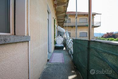 Dal soggiorno si accede a una lunga balconata esposta a sud, alla quale affacciano anche le due camere: uno spazio aggiuntivo che valorizza la luce degli interni e offre uno sfogo esterno.