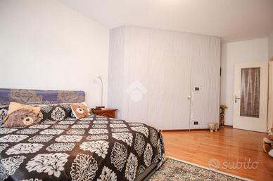 Le due camere da letto, entrambe esposte a sud, si trovano ai lati della zona giorno. La prima è più raccolta, con pavimentazione in moquette; la seconda, più spaziosa, ospita una cabina armadio angolare in cartongesso, pratica e ben integrata nell'ambiente. Qui il pavimento è in parquet originale, restaurato e ben conservato, che dona calore e personalità alla stanza.