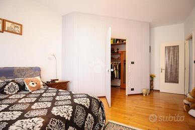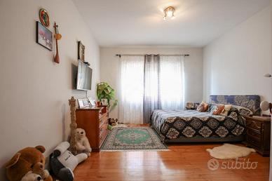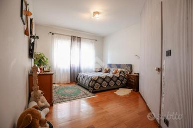 Le due camere da letto, entrambe esposte a sud, si trovano ai lati della zona giorno. La prima è più raccolta, con pavimentazione in moquette; la seconda, più spaziosa, ospita una cabina armadio angolare in cartongesso, pratica e ben integrata nell'ambiente. Qui il pavimento è in parquet originale, restaurato e ben conservato, che dona calore e personalità alla stanza.