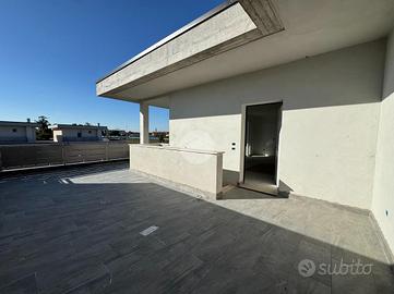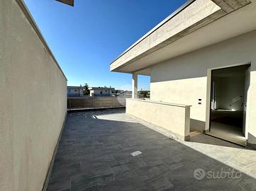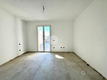Dalla scala coperta di proprietà accediamo alla prima terrazza che gira sui due lati dell'immobile. Dalla porta blindata accediamo al soggiorno, luminoso e con angolo cottura. Dal pratico disimpegno sulla destra dell'ingresso accediamo alla zona notte dove troviamo tre camere: una singola, una doppia e una matrimoniale con terrazzo. Completano il piano due servizi, entrambi finestrati.