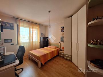 Tramite il disimpegno si raggiunge la zona notte, composta dalla luminosa camera padronale con affaccio su altro terrazzino, due ampie camerette e il bagno padronale accessoriato da vasca.