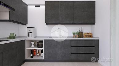 L'ingresso avviene nella luminosa zona giorno composta dalla cucina abitabile e dal soggiorno che affacciano sul terrazzo vivibile di circa 45 mq con esposizione verso sud e ovest.