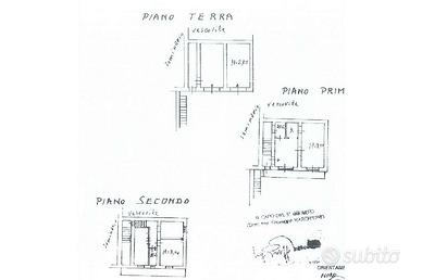 La casa ha accesso al piano primo dove troviamo un soggiorno, una cucina abitabile con termocamino entrambe con accesso al balcone, ed un bagno con vasca e lavanderia che serve il piano.