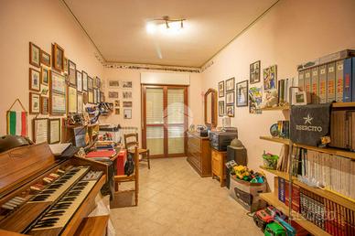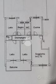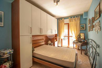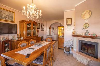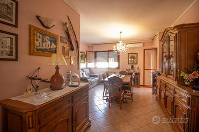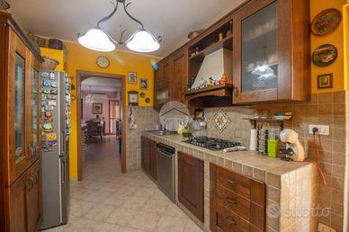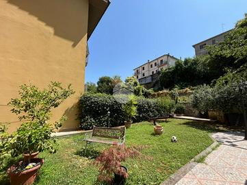 L'immobile, ubicato al primo piano di una palazzina munita di ascensore, misura circa 110 mq e si compone di: soggiorno con camino, cucina abitabile con accesso al giardino di circa 300 mq, corridoio, tre camere da letto, due bagni ed un ripostiglio.