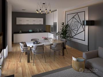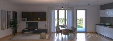 Appartamento numero 7 è interamente sviluppato al primo piano costituito da: ingresso, soggiorno, cucina abitabile (dai quali è possibile accedere direttamente al terrazzo), 2 camere matrimoniali e 2 bagni. Completano la proprietà un'autorimessa e, volendo, una cantina a parte su richiesta.