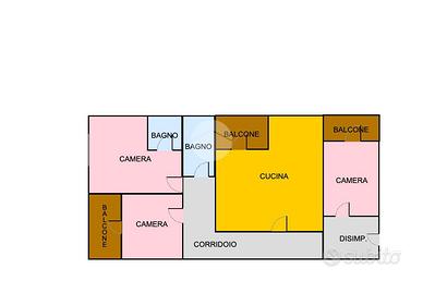 L'immobile è stato progettato per garantire comfort e funzionalità. Entrando, sarete accolti da un ampio disimpegno che conduce alla prima cameretta, dotata di un balcone privato che regala luce naturale. Proseguendo lungo il corridoio, si apre un accogliente salone con cucina living, anche questo con affaccio su un balcone, ideale per momenti conviviali e cene all'aperto.