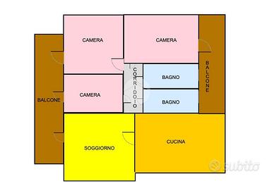 Entrando nella proprietà, si viene accolti da un ampio salone, perfetto per momenti di relax e convivialità. La cucina adiacente si presta a diventare il cuore pulsante della casa, ideale per chi ama cucinare e riunirsi in famiglia. Il corridoio ci guida poi verso le tre spaziose camere da letto, progettate per offrire tranquillità e comfort. Completano l'immobile due bagni funzionali, pensati per soddisfare le esigenze di tutte le famiglie.