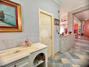 Proseguendo lungo il corridoio, si arriva alla cucina, un ambiente ampio e confortevole, caratterizzato da un triplo affaccio su un balcone che si affaccia sul corso, permettendo di godere della vivacità del quartiere pur mantenendo la propria privacy.