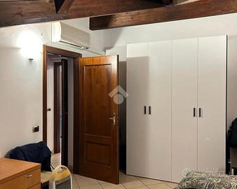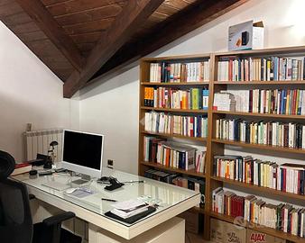 Punto di forza dell'appartamento è il tetto in legno lamellare con travi a vista, che rende l'ambiente caldo e accogliente.