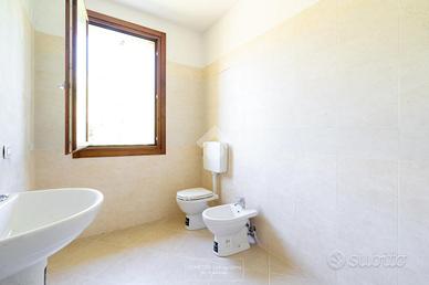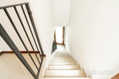 Una scala interna conduce alla zona notte superiore, dove si trova un secondo bagno e la possibilità di ricavare due ulteriori camere, adattabili alle esigenze familiari. La recente costruzione garantisce efficienza energetica e comfort abitativo.