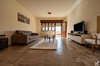 La disposizione degli spazi è funzionale e accogliente: l'ingresso conduce a un ampio soggiorno di circa 40 m² con accesso alla terrazza, seguito da sala da pranzo e cucina separata. La zona notte comprende due camere matrimoniali, una camera singola dalle generose metrature, due bagni e un balcone.