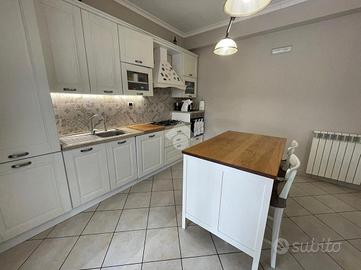 L'immobile si apre su un luminoso soggiorno con cucina a vista, valorizzato dal doppio affaccio sul terrazzo abitabile, spazio ideale per pranzi e momenti di relax all'aperto.