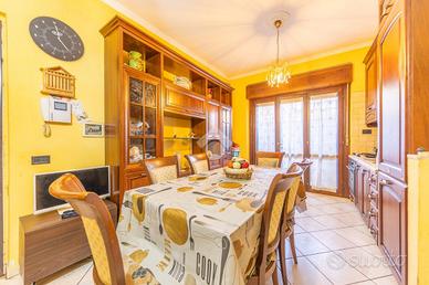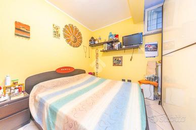 L'immobile, distribuito su due livelli, si trova al piano terra di una palazzina di soli due piani, ed è dotato di due ingressi: uno al piano terra e l'altro con accesso diretto dal box auto. Composto da Luminoso soggiorno con angolo cottura e accesso in terrazza che affaccia sul giardino, grazie a una comoda porta finestra. Zona notte composta da due camere matrimoniali e un bagno finestrato. Piano inferiore con sala hobby, seconda camera, e un secondo bagno finestrato. Inoltre, l'immobile include un box auto di proprietà di 15mq collegato direttamente dal piano inferiore e una cantina di 11mq.