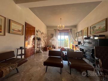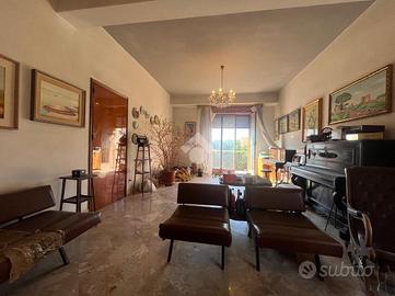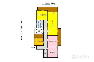 La zona giorno si compone invece di un ampio salone, con balcone prospisciente Via delle Ninfe, oltre che un soggiorno.