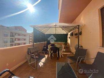 L'immobile presenta due ingressi sulla zona giorno, uno su una cucina abitabile e l'altro sul salone sul quale è prospiciente una terrazza esclusiva. La zona notte è caratterizzata da tre camere da letto. A servizio dell'appartamento due bagni ed un ripostiglio. L'immobile presenta pavimentazione in parquet ed infissi in alluminio anodizzato. Di pertinenza esclusiva un posto auto nel garage condominiale.