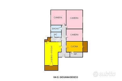Nello specifico l'appartamento si compone da un ingresso che conduce alla zona gioro, composta da cucina abitabile e ampio salone prospicente alla suddetta via.