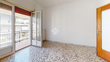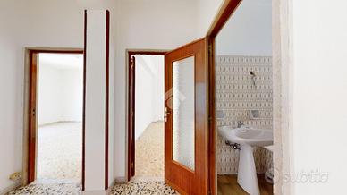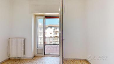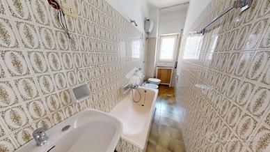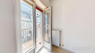 L'ingresso si apre su un piccolo disimpegno che conduce alla prima stanza, dotata di attacchi per la cucina e balcone con affaccio sull'atrio interno del palazzo. Proseguendo troviamo un bagno con vasca.