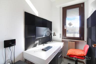 ingresso su disimpegno, tre camere da letto matrimoniali con accesso ai due balconi, bagno finestrato con vasca ed infine una stanza adibita a studio.