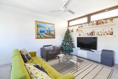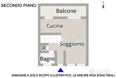 La soluzione è così composta: ingresso su corridoio, soggiorno open-space dotato di spazi generosi, con accesso al balcone, cucina a vista, bagno finestrato con box doccia ed infine ripostiglio sotto scala.
