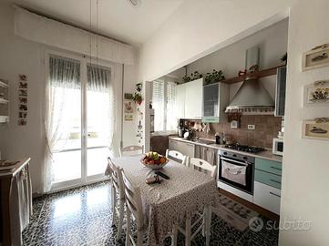 Dallo spazioso ingresso si entra alla zona giorno, composta dal soggiorno, con accesso al balcone verandato, e dalla cucina abitabile, con accesso al terrazzo.