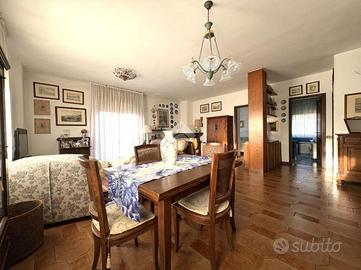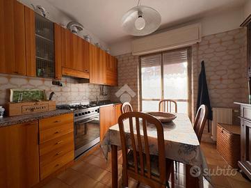 Tramite portone blindato si accede alla proprietà composta da cucina aitabile con accesso alla balconata, ampio soggiorno con camino, due camere da letto di cui una dotata di balcone privato e bagno finestrato. Grazie alle ampie metrature vi è la possibilità di creare una terza camera da letto. Completa la proprietà una comoda cantina al piano seminterrato dello stabile.
