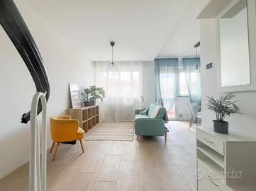 Ronchi - Vicino al mare e ai principali servizi, proponiamo appartamento di 3,5 locali su due livelli, appena ristrutturato. Fornito di doppi servizi e balcone, in condominio in ordine nelle sua parti comuni; completa un posto auto in cortile condominiale.