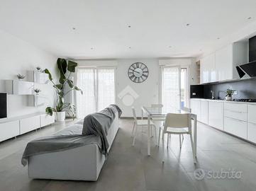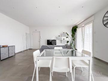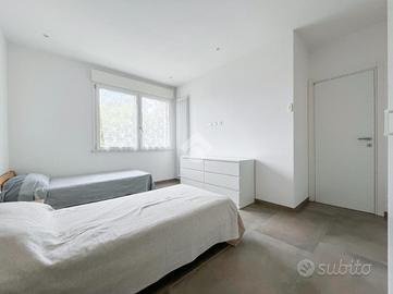Ronchi - A pochi passi dal mare, proponiamo al secondo piano servito da ascensore, 4 locali con doppi servizi completamente ristruttrutturato con materiali di pregio. Completa la proprietà un box auto privato ed un posto auto assegnato in area condominiale. L'appartamento si presenta con ingresso tramite porta blindata direttamente all'ampia zona giorno con cucina a vista e doppio accesso al balcone pranzabile. Attraverso il disimpegno di giunge alla zona notte con due camere da letto matrimoniali di cui una con bagno privato con box doccia e secondo balcone. Il bagno principale è finestrato con box doccia doppio. Il riscaldamento è autonomo ed è presente la predisposizione per l'impianto di climatizzazione in tutti gli ambienti. Le ampie metrature, il perfetto stato interno, la posizione a pochi passi dal mare e la presenza di un box auto e un posto auto, rendono questa soluzione unica ed ideale come casa al mare o residenza principale.
