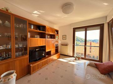 Mele. Via delle Vigne. In palazzina recentemente ristrutturata proponiamo splendido sei vani, ottimamente esposto, composto da ingresso, cucina, soggiorno, due camere da letto, doppi servizi e dispensa. Balcone esposto a sud. Riscaldamento autonomo. Ascensore. Finestre e tapparelle di recentissima sostituzione. Facilità di posteggio. Zona molto soleggiata e tranquilla. Vista apertissima. Box di proprietà di mq 25 in vendita ad Euro 35.000,00.