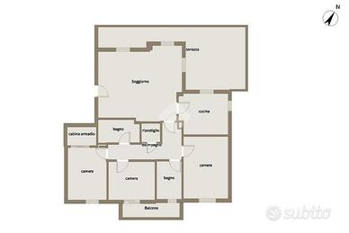 L'appartamento dispone di una camera matrimoniale, una cameretta con affaccio sul balcone e una cameretta con cabina armadio, perfette per famiglie. I due bagni, uno principale e uno di servizio con doccia, garantiscono il massimo comfort cosi come un pratico ripostiglio.