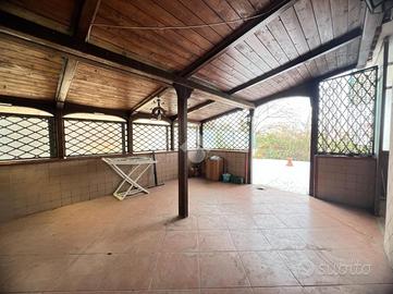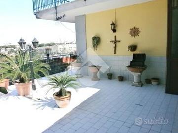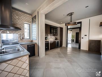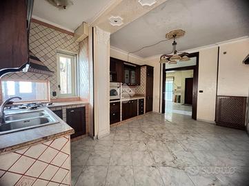 Il soggiorno è ampio, con grandi finestre che permettono alla luce naturale di inondare l'ambiente, creando un'atmosfera calda e accogliente. La cucina, separata dal soggiorno, è completamente attrezzata e offre un comodo terrazzo perfetto per pranzi all'aperto o per godersi un momento di tranquillità. Un lungo balcone che circonda tutta la casa consente di accedere a più stanze, offrendo una vista panoramica e la possibilità di vivere l'appartamento anche all'esterno.