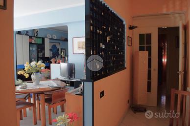La casa si colloca al secondo piano dello stabile, dotato di ascensore, le cui facciate sono state rifatte. Si presenta molto luminosa grazie all'esposizione a sud-est e gli ambienti risultano ampi e confortevoli. La comoda metratura è stata ben divisa fra zona giorno composta da ingresso, sala pranzo, soggiorno e angolo cottura, tutti collegati fra di loro così da formare un pratico e moderno open space; e zona notte in cui si trovano le due camere da letto, il bagno con vasca ed il ripostiglio. Dotato di impianto di riscaldamento autonomo, l'immobile si presenta abitabile richiedendo pochi interventi di ammodernamento.