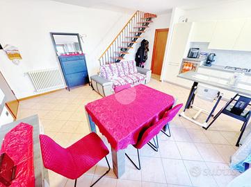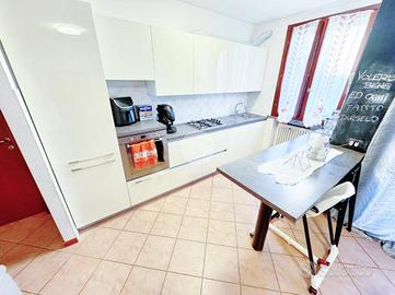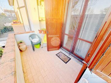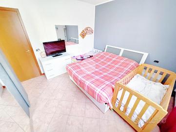 L'immobile è composto da: ingresso su un'ampia zona giorno luminosa con sala, cucina e accesso al terrazzino. Sullo stesso piano troviamo un disimpegno che collega la camera matrimoniale e un bagno finestrato e con box doccia.