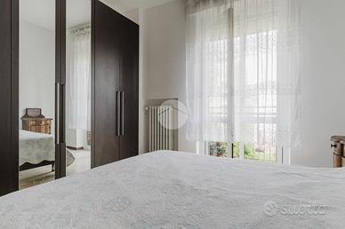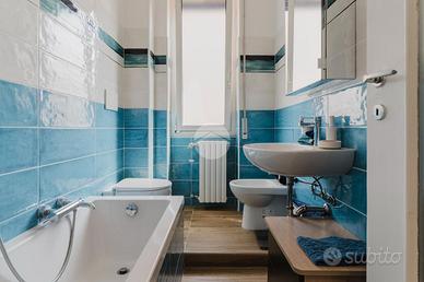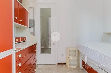 Con esposizione diversa troviamo la seconda camera con accesso al terzo balcone con piacevole affaccio su corte interna. Segue il primo bagno finestrato con vasca. Infine a completare l'immobile troviamo la terza camera matrimoniale con bagno en suite con areazione forzata.