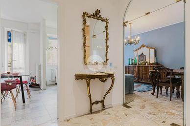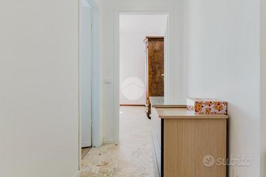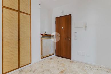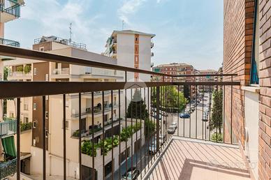 Ingresso in ampio disimpegno dove sull'esposizione sinistra troviamo la cucina abitabile con accesso al primo balcone con piacevole affaccio su Viale Aretusa. Seguono con medesima esposizione il soggiorno e la prima camera matrimoniale con accesso al secondo balcone dell'immobile.